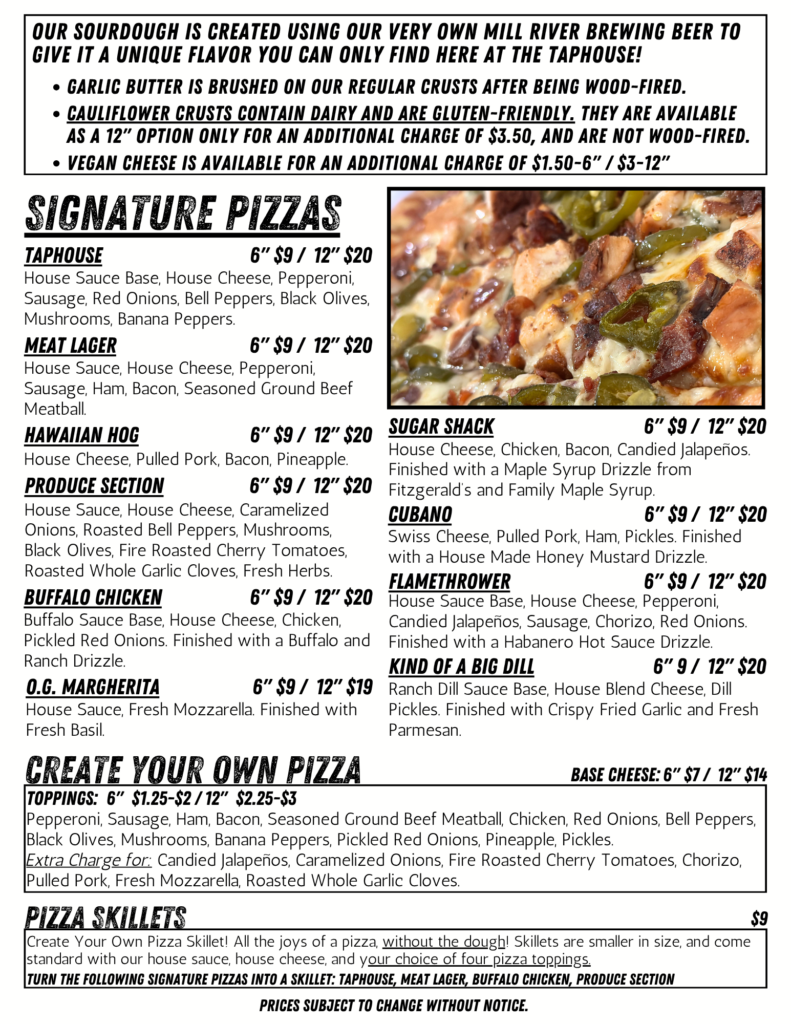 *Kindly be aware: While we take great care in preparing gluten-friendly options, our kitchen is not entirely gluten-free. Although we cook the cauliflower crust on a separate pan, there is a possibility of cross-contamination due to the presence of flour in our kitchen. We appreciate your understanding and encourage you to inform our staff of any dietary restrictions or concerns.